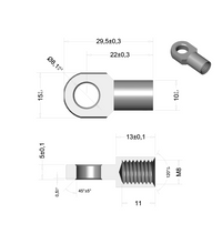 M6 | Ø8 | 22 ± 0,3 mm | 29,5 ± 0,3 mm | 10 gr |